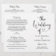 Striking black heart script spells out "The Wedding Of" across the front of this modern ceremony program with a romantic heart flourish accent. The bold black calligraphy creates a dramatic, contemporary statement against a clean white background. Inside pages are fully customizable for your bridal party, ceremony order, and a personal thank you message on the back cover. Programs are printed on text-weight paper and arrive flat, requiring a simple center fold.