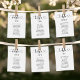 Modern black and white (colours can be modified) wedding table number cards feature a stylish black typography design with chic calligraphy script and a heart accent. The simple and elegant custom text that can be personalised with the table number and guest names seated at that particular table. Customise and add each individual table number card needed (1, 2, 3...and so on) to your shopping cart.