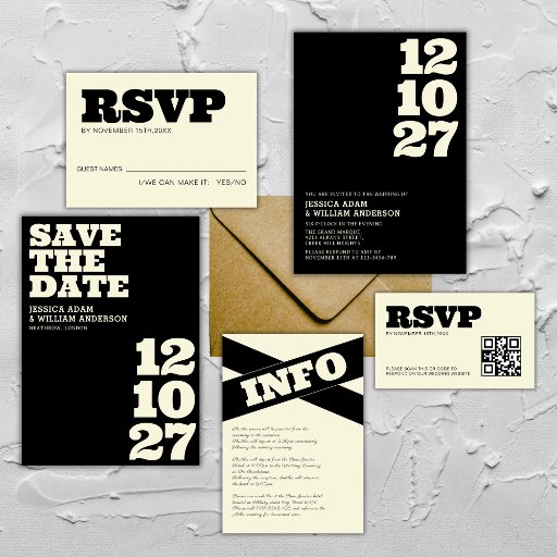 Ultra modern chic and sophisticated black and ecru colour personalised wedding envelope. This envelope is easily editable. If you need help with the customisation of this product or you need more matching products for this collection kindly message me via Zazzle.