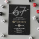 A modern minimalist design featuring elegant calligraphy on a black background. Customize the details for a cool Birthday Celebration.