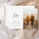 Modern Black and White Monogram Photo Wedding Thank You, Card. Stylishly impress your guests with this elegant, simple, white, and black, photo wedding thank you card, with an elegant initials script in black and grey, over a plain white background, alongside a personalised photo of the now-married couple. The stylish initials are repeated again on the back of the card in reverse colours. This minimal wedding thank-you card gives an elegant, sophisticated feel to your black-and-white wedding.