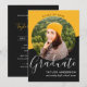 Modern Elegant Typography Black Yellow Photo Graduation Invitation - Class of 20XX