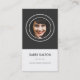 Here is a modern social media designed business card in black, and white. On the front, you have the option to insert your own photo there. The back of the business is where you put your contact information and social media related links. Omit the icons and info you don't need.