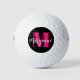 Modern Black and Bright Hot Magenta Pink Personalised Script Monogram Name and Initial on Custom Golf Balls with a modern farmhouse style rustic elegant calligraphy script and bold serif font.