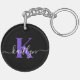 This modern black keychain with your first name in a trendy script font in white and your first initial in a modern cap font in purple is perfect for your keys. It's stylish and modern and yet very classic.