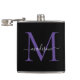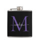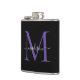 Modern Black Purple Violet Monogram Script Name Hip Flask