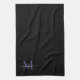Modern Stylish Elegant Black Purple Violet Monogram Script Name Kitchen Towel
