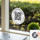 Modern, black-and-white QR code, business name, and slogan round window decal with elegant black circle frame. This simple window cling template in a modern, minimalist style can be easily updated with your QR code, business name, website, or other text like "Scan me to...". Use the design template and dress your windows for success! y.BEE PAPERIE #ZazzleMade #businessdoordecals #RoundQRCodedecals #storefrontdecals #RoundQRCodedoorsticker