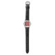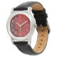 A watch with a modern abstract pattern. Red and black colours swirl, mix and mingle together. Creative, artistic and unique with a dark, mysterious flair.