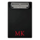 Modern Black and Red Monogram Initials Mini Clipboard. Beautiful design featuring simple red double initial monogram text on modern black. Personalise with your own text. Cute accessory, great for use at your school, home, or office. Would make an excellent gift for birthdays, holidays, graduations, promotions, any special occasion, or everyday. We invite you to visit our store, Simon & Grace for matching products and more.