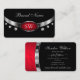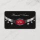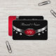 Modern Black Red Silver with Monogram and Diamonds Business Card