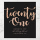Minimalist 21st birthday black and rose gold wine bottle label in modern, chic and elegant typography style. Featuring age "twenty one" in sparkly rose gold. Customise with age, name, and year of birth.