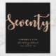 Minimalist 70th birthday black and rose gold wine bottle label in modern, chic and elegant typography style. Featuring age "seventy" in sparkly rose gold. Customise with age, name, and year of birth.