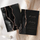 The left-hand edge of this elegant modern wedding invitation features a black watercolor agate border trimmed with faux rose gold glitter. The customisable text combines handwriting, copperplate and italic fonts in real rose gold foil on an off-black background. The reverse side features a matching black and rose gold agate design.