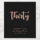 Minimalist 30th birthday black and rose gold wine bottle label in modern, chic and elegant typography style. Featuring age "thirty" in sparkly rose gold. Customise with age, name, and year of birth.