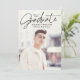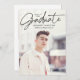Announce your graduation in style with this modern and minimalist graduation party invitation. Featuring your vertical senior photo, this design highlights “Graduate” in an elegant black handwritten script positioned near the top, creating a sleek and sophisticated look. Personalise the front with your name, school, and graduation year for a custom touch. The back showcases a horizontal photo with your graduation party details displayed below. Perfect for high school and college graduates, this chic and timeless invitation sets the tone for a memorable celebration.