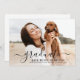 Two sided graduation party invitations feature a photo announcement on the front with black modern and minimalistic elegant script "graduate" overlay and monogram design. The back of the card features graduation celebration invitation information that can be completely customised for your special graduation party event. Note, the white background colour on the back can be edited to another colour via Customise.