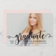 Stylish and elegant graduation announcement card and party invitation features a senior photo with "graduate" script overlay. Personalise the modern custom text with your grad's name, school, and class year. This two-sided card design includes graduation party invitation wording on the back. The pretty blush pink and black colour scheme can be customised to coordinate with photo or party colours.