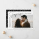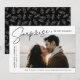 Share the news of your surprise engagement with these elegant photo engagement announcements. The design features the phrase "Surprise, we got engaged!" in a trendy black script and modern lettering. Your engagement photo is featured in the centre-right part of the design with your names and engagement date displayed on the left. Personalise the surprise engagement announcement by adding additional details below such as wedding city/state, wedding website, etc. The announcement reverses to display a white foliage pattern on a black background.