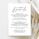 Simple and elegant wedding details card featuring a black, handwritten script mixed with modern lettering against a white background. Personalise the minimalist wedding details card with your wedding details such as reception information, hotel accommodations, wedding website, etc. The black and white wedding details card is perfect for modern weddings.