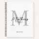 Modern Black Script White Grey Monogram Recipe Notebook