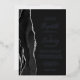 The left-hand edge of this elegant modern wedding invitation features a black watercolor agate border trimmed with faux silver glitter. The customisable text combines handwriting, copperplate and italic fonts in real silver foil on an off-black background. The reverse side features a matching black and silver agate design.