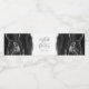 This modern wedding design features a black watercolor agate and silver faux glitter border on the left and right sides. Personalise it with the couple's names in elegant charcoal grey handwriting script over a large ampersand on a white background, with the wedding date below.