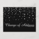 Modern Black Silver Glitter Change of Address Announcement Postcard