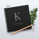 Chic Elegant Modern Silver Monogram Script on a chic Black Square Spiral Notebook. Easy to customise with your own name and details. Perfect for your luxury lifestyle! Makes a great journal or sketchbook! Please contact us at cedarandstring@gmail.com if you need assistance with the design or matching products.