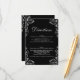 A dramatic and modern design with ornate swirls, flowers and curly Q's in a faux silver foil on a black background. Based on French baroque art, this design combines old world art with modern twists. Black and grey are traditional colours for every wedding season. Use this as part of your invitation suite for helping your guests find their way to the ceremony and the reception venues.