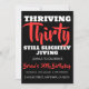 Celebrate your dirty thirty in style with this simple, elegant and sophisticated 30th Birthday Invitation! Featuring a clean, modern design in bold white and red text in black background, and this invitation is perfect for the adult who wants a touch of class for their milestone birthday. Personalise it with your name, party details.