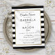 Featuring a classic black and white stripe background, this elegant wedding couples shower invitation postcard has a faux gold foil border framing your couples shower details set in modern chic typography. Designed by Thisisnotme©