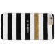 Personalise this modern wide horizontal black and white stripes pattern Barely There iPhone 6 Plus Case with a glitzy gold glitter stripe by adding the name of any girly girl. This trendy graphic striped pattern is perfect for the chic fashionista. Flat printed image, NOT actual glitter.