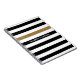 Personalise this modern wide horizontal black and white stripes pattern notebook with a gold glitter stripe by adding the name of any girly girl. This trendy graphic striped pattern is perfect for the chic fashionista. Flat printed image, NOT actual glitter.