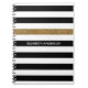 Modern Black Stripes FAUX Gold Glitz and Name Spiral Notebook
