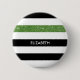 Personalise this modern wide horizontal black and white stripes pattern button with a glitzy green glitter stripe style design by adding the name of any girly girl. This trendy graphic striped pattern is perfect for the chic fashionista. Flat printed image, NOT actual glitter.