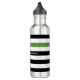 Personalise this modern wide horizontal black and white stripes pattern water bottle with a glitzy green glitter-like stripe by adding the name of any girly girl. This trendy graphic striped pattern is perfect for the chic fashionista. Flat printed image, NOT actual glitter.