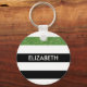 Personalise this modern wide horizontal black and white stripes pattern keychain with a glitzy green glitter-like stripe by adding the name of any girly girl. This trendy graphic striped pattern is perfect for the chic fashionista. Flat printed image, NOT actual glitter.