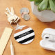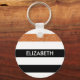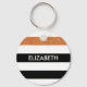 Personalise this modern wide horizontal black and white stripes pattern keychain with a glitzy orange glitter-like stripe by adding the name of any girly girl. This trendy graphic striped pattern is perfect for the chic fashionista. Flat printed image, NOT actual glitter.