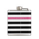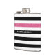 Modern Black Stripes FAUX Pink Glitz and Name Hip Flask