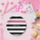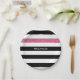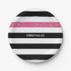 Modern Black Stripes FAUX Pink Glitz and Name Paper Plate
