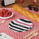 Personalise these modern wide horizontal black and white stripes pattern paper plates with a hot pink glitter stripe by adding the name of any girly girl. This trendy graphic striped pattern is perfect for the chic fashionista. Flat printed image, NOT actual glitter.