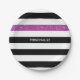 Modern Black Stripes FAUX Purple Glitz and Name Paper Plate