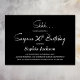 This modern black surprise 30th birthday invitation is designed to set the stage for a truly memorable celebration. The customisable text templates allow you to add the name of the honoured guest, the secret party details, and the venue with ease. Your loved one will be in for a night of laughter and cherished memories. You can choose from a variety of paper types and corner styles to create unique invitations that suit your taste. Plus, you also have the option to download the invitation if you prefer a digital version.