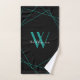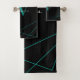 Modern Black Teal Monogram Geometric Name Script Bath Towel Set