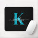 This simple, elegant black mousepad with your first name in a trendy script font in white typed over your first initial in a modern cap font in teal is perfect for your office/desk. It's stylish and trendy and yet very classic.
