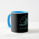 Modern Black Turquoise Handwritten Monogrammed Mug