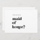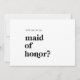This modern black typography maid of honour proposal card is perfect for a simple wedding. The black and white minimalist design features a retro yet contemporary font with a unique rustic bohemian feel. Perfect for any season. Keep it minimal, as is, or add your own graphics and artwork. Customise the card with the name of the bride and the bridesmaid. Personalise the back of the card with a personalised message.