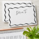 Enhance your graduation invitations, announcements, and thank you cards with these Modern Black Wavy Frame personalised graduation envelopes. The front of the envelope showcases a stylish black wavy frame border with "Deliver To" elegantly written in a handwritten black script, creating a modern look. The back flap features a graduation cap with the graduate’s name and return address in bold black lettering, adding a personalised touch. Perfect for high school and college graduation mailings, these custom envelopes bring a polished and professional feel to your special celebration.