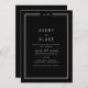 This wedding invitation from the Avery Suite features a dark black background, a slim white double frame, and clean sans serif type. It creates a modern, polished look suited to city venues, galleries, and evening weddings.